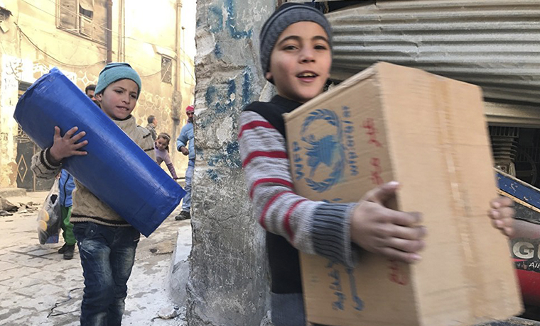 Не остаются в стороне и международные организации. Так, российские самолеты сбросили несколько парашютных платформ в район города Дейр-эз-Зор с 20,5 тонны продовольствия, которые сирийским властям выделили по линии Организации Объединённых Наций.