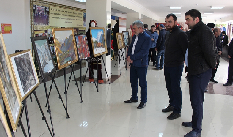 Это работы Заслуженного художника РФ Павла Рыбакова из серии «Старые улочки Нижнего», литография Алексея Зуева «Ночь на Волге», « Первый снег» Заслуженного художника РФ Петра Рещикова, полотна художника ЧР Аманды Асуханова и Заслуженных художников ЧР Султана Абаева и Чингисхана Хасаева.