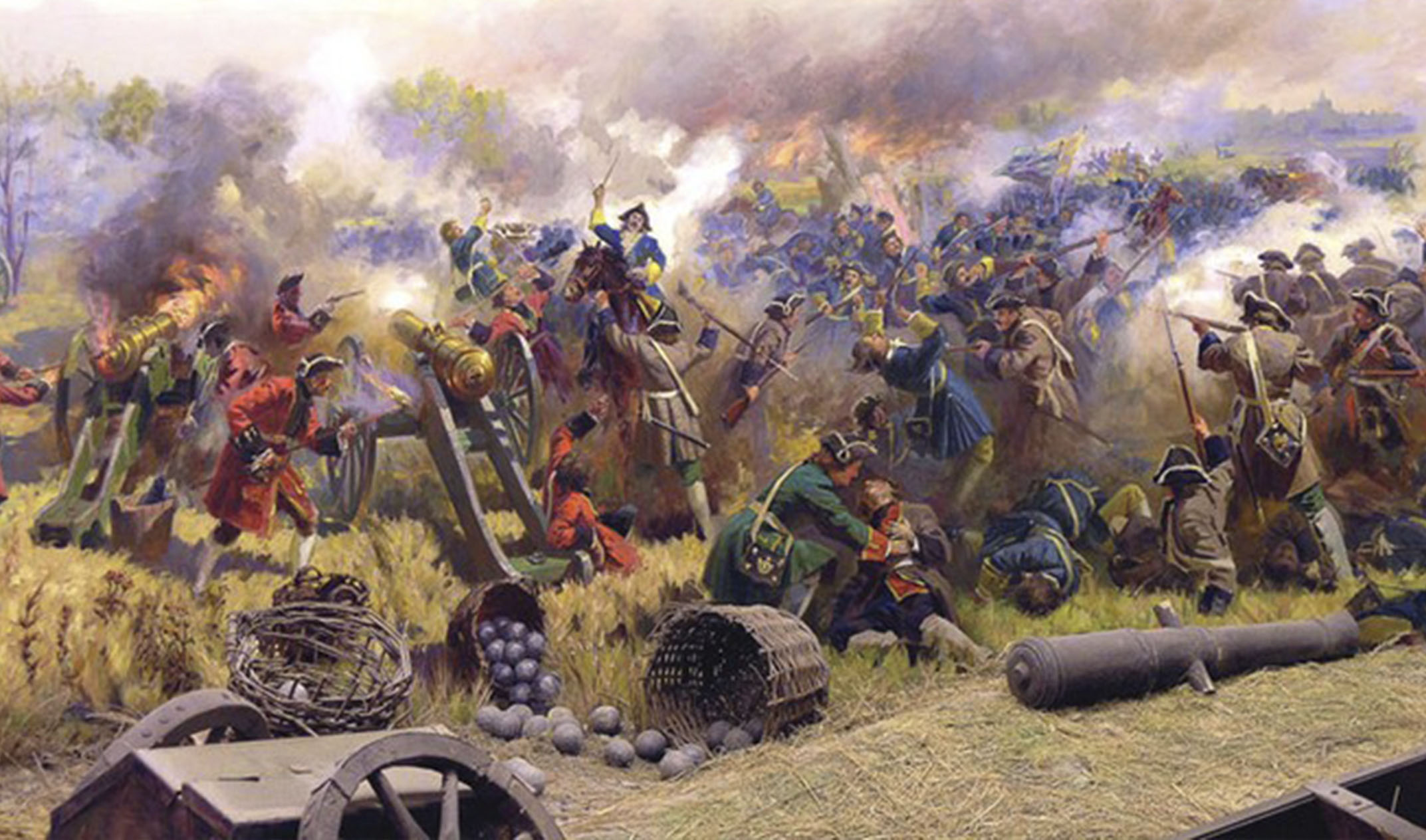 30 апреля 1709 года шведские войска, вторгшиеся на территорию России, начали осаду Полтавы. Её гарнизон в составе 4,2 тыс. солдат и 2,6 тыс. вооружённых горожан под руководством полковника А.С. Келина успешно отбил ряд штурмов. В конце мая к Полтаве подошли главные силы русской армии во главе с Петром. Они расположились на противоположном от Полтавы левом берегу реки Ворсклы.
