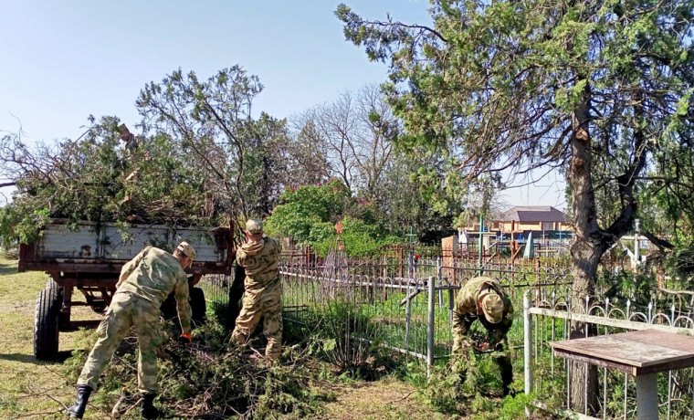 В преддверии 80-летия Великой Победы военнослужащие отдельной ордена Жукова бригады оперативного назначения Северо-Кавказского ордена Жукова округа Росгвардии благоустроили захоронения ветеранов Великой Отечественной войны на территории кладбища в станице Петропавловская.