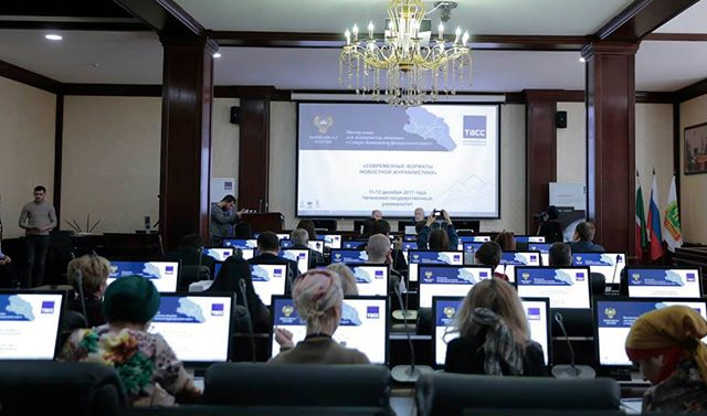 С 6 по 7 октября, в городе Минеральные воды Ставропольского края, в выставочном центре «МинводыЭКСПО» прошел мастер-класс для журналистов, освещающих события СКФО. От Чеченской Республики в нем приняли участие шеф-редактор редакции новостей ЧГТРК «Грозный» Залина Атаева, корреспондент ВГТРК «Вайнах» Магомед Дадаев, заместитель главного редактора Общественно-политической газеты «Вести Республики» Рамзан Абубакаров и руководитель пресс-службы Чеченского Государственного Университета Ваид Дадаев.