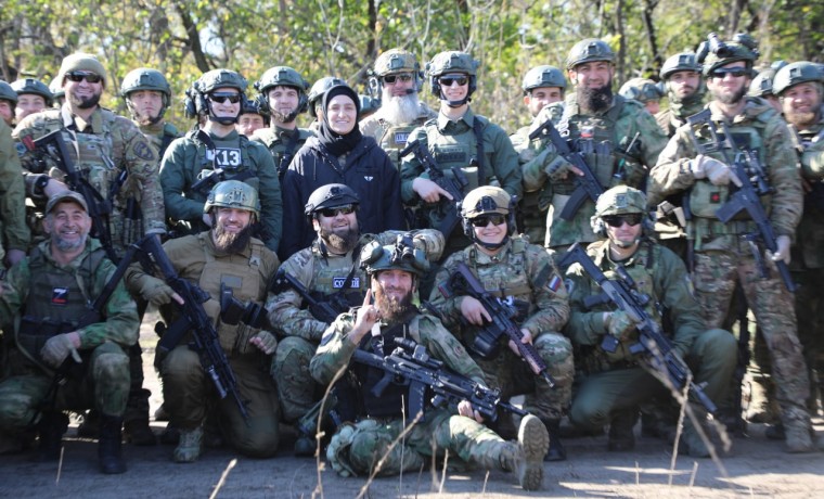 Здесь они ознакомились с ситуацией на фронте, пообщались с бойцами батальона "Запад-Ахмат" и с бесстрашными офицерами Исмаилом и Рустамом Агуевыми. Внуки нашего Первого Президента, Героя России Ахмата-Хаджи Кадырова - Ахмат, Эли и Адам прибыли на фронт, как и полагается защитникам Отечества, во всеоружии. Они настроены решительно и готовы прямо сейчас вступить в бой с противником. Обратилась к личному составу подразделения и внучка Ахмата-Хаджи. Айшат подчеркнула, что, как и она, готовы выйти на защиту Родины при первой же необходимости все чеченские женщины. В этом можно даже не сомневаться. Во все времена наши женщины делили с мужчинами все тяготы и лишения судьбы” , - рассказал Глава региона.