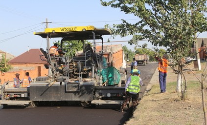 На 2 км улицы завершены работы по устройству нижнего слоя асфальтобетона и уже идут работы по устройству верхнего слоя.