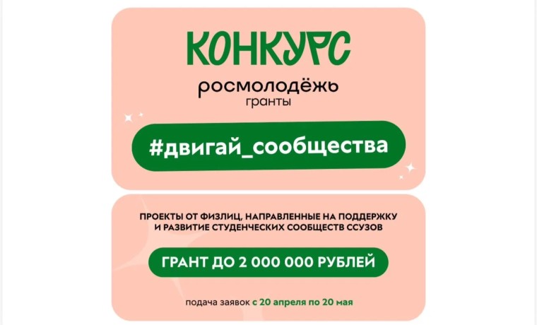 Конкурс реализуется по национальному проекту «Молодёжь и дети». Подать заявку можно с 20 апреля по 20 мая.