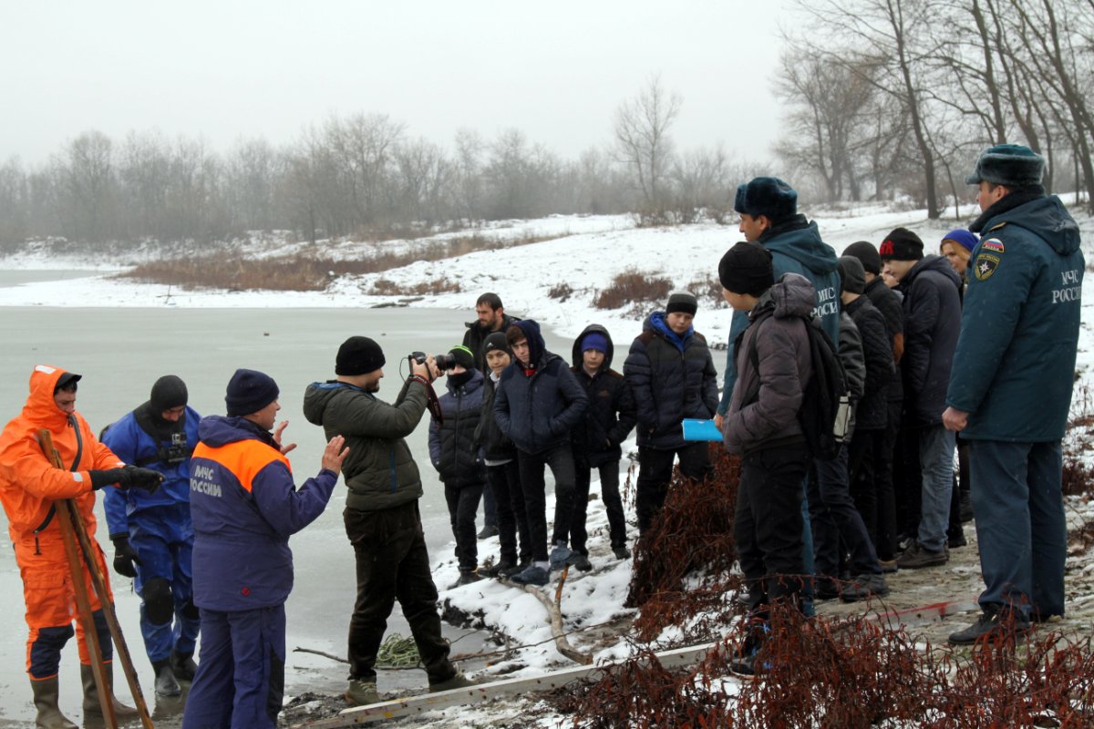 Практическое мероприятие прошло на Сунженском водохранилище в Грозном. Сотрудники Чеченского поисково-спасательного отряда рассказали и наглядно продемонстрировали школьникам, что нужно делать провалившемуся под лед человеку, если поблизости нет никого для оказания помощи. По второму сценарию занятия дети стали очевидцами происшествия. Здесь учащиеся узнали, что с помощью веревки, ветки, связанных между собой ремней или других приспособлений можно вытащить тонущего человека. Дети самостоятельно попробовали спасти условно тонущего человека — роль пострадавшего на занятии исполнял водолаз ЧПСО МЧС России.