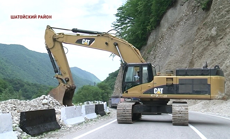 Из-за ливневых дождей здесь произошли многочисленные оползни и обвалы. Абубакар Тумхаджиев лично контролирует работы по восстановлению автосообщения в районе.