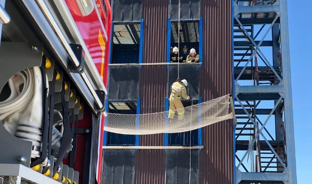 В связи с ограничениями, связанными с распространением коронавирусной инфекции, практические действия отрабатывались на территории подразделения – многоэтажным зданием служила учебная башня.