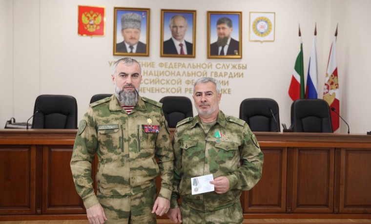 Переходя к торжественной части, руководитель тероргана вручил медаль Управления Росгвардии по Чеченской Республике «За отличие в службе» начальнику группы медицинского обеспечения территориального Управления Росгвардии подполковнику полиции Анвару Татаеву. Кроме того, отличившихся сотрудников руководитель тероргана наградил Почетными грамотами Управления Росгвардии и передал им также Почетные грамоты Парламента Чеченской Республики.