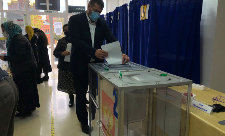 Секретарь Наурского местного отделения «Единой России», заместитель министра ЧР по национальной политике, внешним связям, печати и информации Дмитрий Кашлюнов проголосовал на своем избирательном участке №218 в станице Наурская.