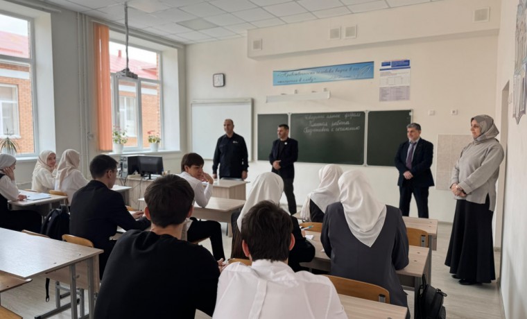 Депутат Парламента Чеченской Республики Ибрагим Эдилов и Руководитель фракции «Единой России» в Совете депутатов Надтеречного района, исполнительный секретарь Надтеречного местного отделения Билал Акмурзаев встретились с учащимися гимназии № 10 села Знаменское.