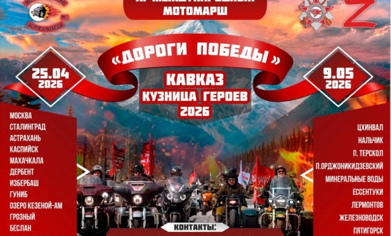 Международный мотомарш «Дороги Победы - Кавказ кузница героев 2026» пройдёт от Москвы до Пятигорска
