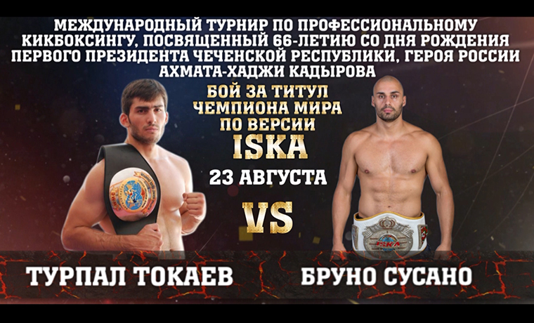 Главным боем станет поединок за звание Чемпиона мира по версии ISKA в полутяжелом весе между Турпалом Токаевым и португальским нокаутером, действующим чемпионом Бруно Сусано.